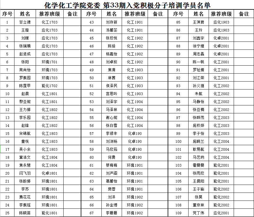 按照组织发展程序和党员发展工作安排,经班团推荐、支部初审、各年级辅导员审核,2020年11月24日英国365上市公司党委会,审定通过了英国365党委第33期入党积极分子培训班参训学员名单,现予以公示,公示期:3天,请广大师生监督。监督电话:029-81469205