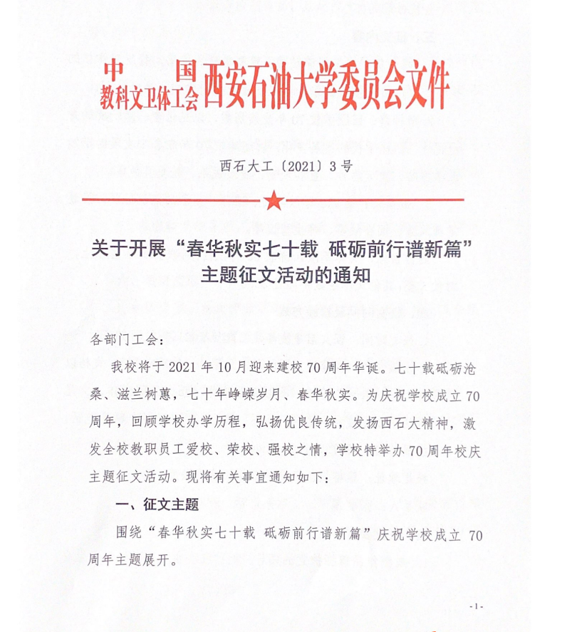 【工会工作】关于开展“春华秋实七十载 砥砺前行谱新篇”主题征文活动的通知
