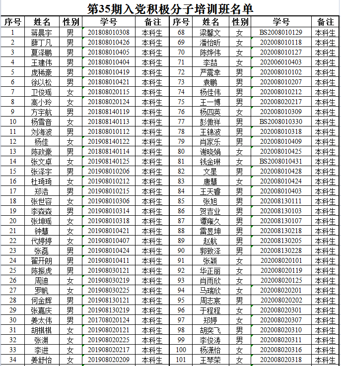 第35期入党积极分子培训名单公示
