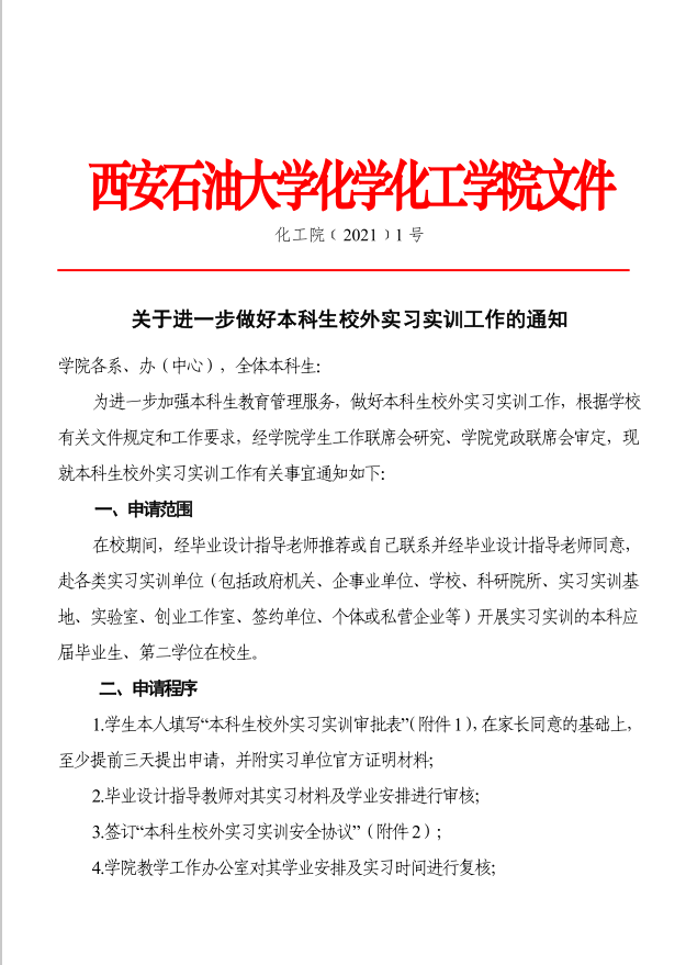 【学生管理】关于进一步做好本科生校外实习实训工作的通知
