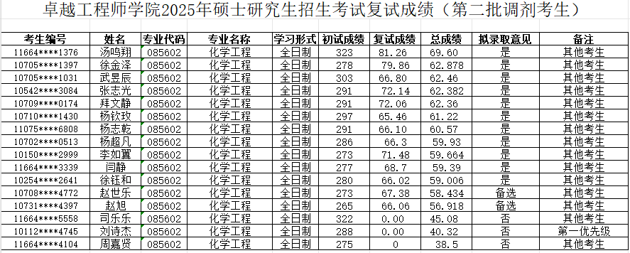 【招生工作】卓越工程师学院2025年硕士研究生招生复试成绩公布(调剂第二批)