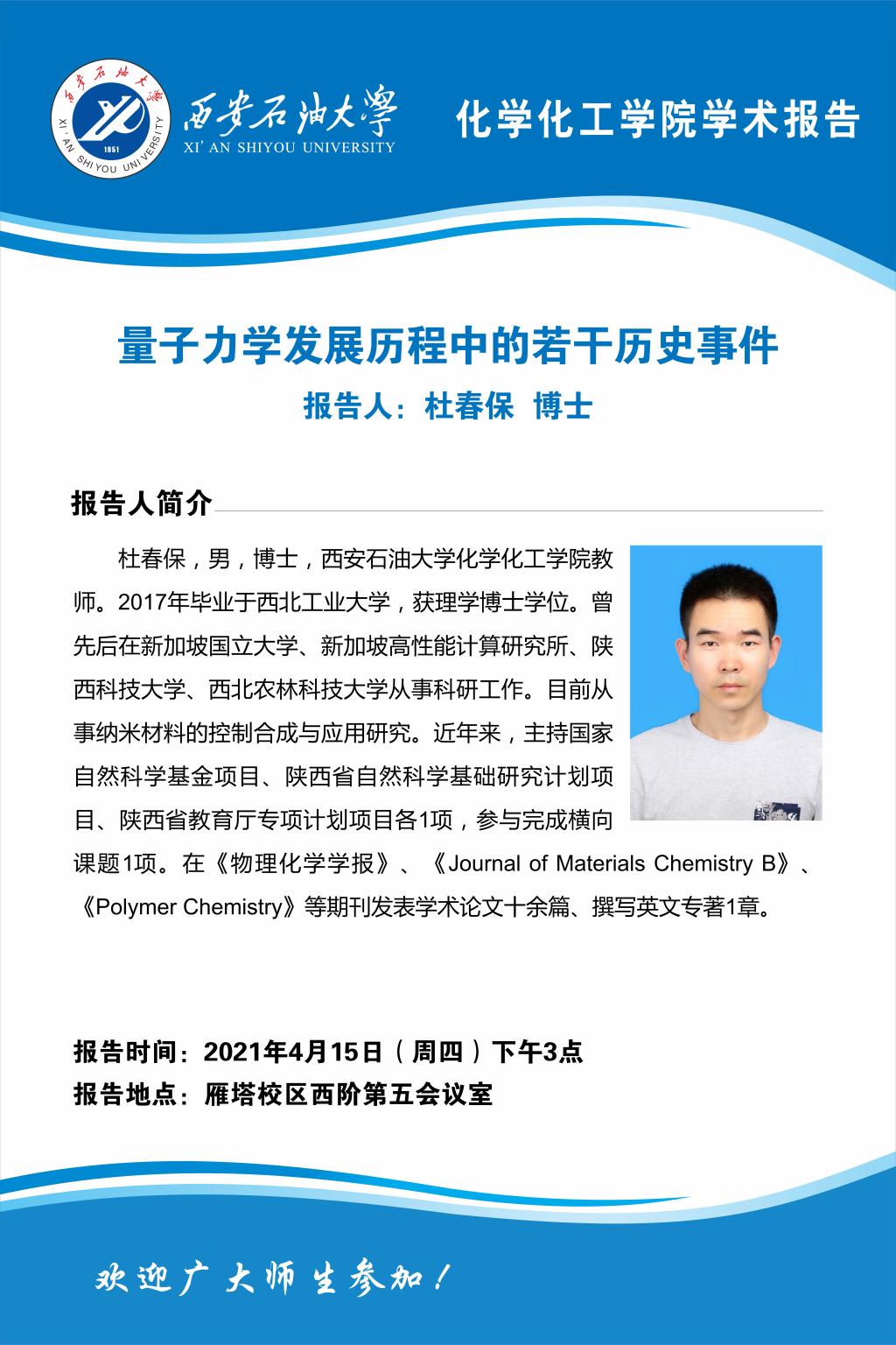 【学术讲座】量子力学发展历程中的若干历史事件-杜春保